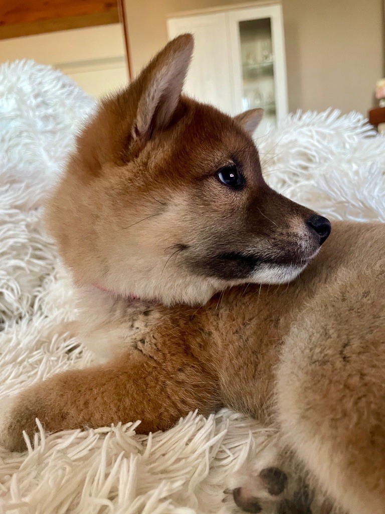 Hana est une adorable petite Shiba Inu au tempérament vif, curieux et espiègle. Pleine de charme et de personnalité, elle adore les moments de tendresse, les câlins et ne résiste jamais à une délicieuse friandise au poulet.